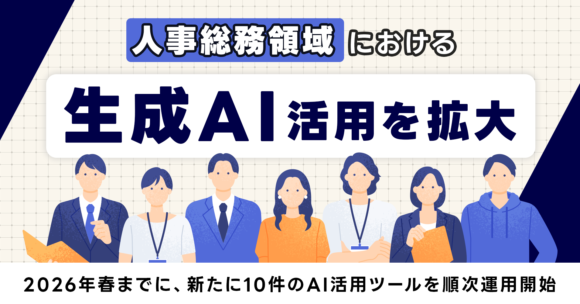 LINEヤフー株式会社(以下、LINEヤフー)は、人事総務領域において生成AIを業務補助ツールと位置付け、2026年春までに新たに10件のAI活用ツールの運用を順次開始します。人材育成、労務管理、採用支援、各種申請・問い合わせ対応など人事総務の主要業務に生成AIを活用することで、担当者の業務効率化に加え、従業員の自律的なキャリア形成を支援します。これらの取り組みは、個別業務に閉じた活用ではなく、人事業務全体を横断する形で組織的に展開していきます。
